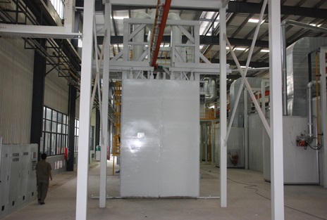 風電行業拋丸機設備噴丸工作過程、拋丸機設備設備構成及結構說明:1.噴丸房體系統;2.丸料回收系統;3.分選系統;4.噴丸系統;5.除塵系統;6.風機;7.自動噴丸系統;8. 工件自動轉動系統(包括輸送臺車);9. 真空吸塵機;10 .電控系統。