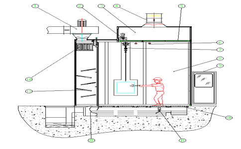 變壓器散熱片懸掛鏈?zhǔn)絿娖嵘a(chǎn)線水簾噴漆室 對(duì)于連續(xù)流水作業(yè)的涂裝噴漆室,漆霧處理一般采用濕式。雖然干式噴漆室隨著漆霧濾材的改進(jìn)而得到了越來(lái)越廣泛的應(yīng)用,但由于漆霧附著飽和后依然需要手工處理或者更換,無(wú)疑將造成設(shè)備開(kāi)工率的下降,而大批量涂裝作業(yè)漆霧的飛散量將更多,增加了濾材處理更換的次數(shù)