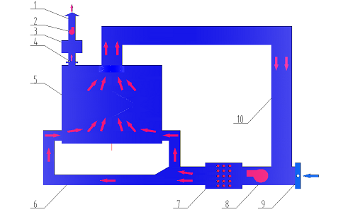 變壓器散熱片懸掛鏈?zhǔn)絿娖嵘a(chǎn)線烘干室:烘干采用熱風(fēng)循環(huán)電加熱的方式進(jìn)行。通過(guò)循環(huán)風(fēng)機(jī)及管道,加熱后的空氣進(jìn)入烘干室內(nèi)與工件進(jìn)行熱交換,實(shí)現(xiàn)對(duì)工件的升溫加熱,換熱后的空氣由回風(fēng)管收集,與補(bǔ)充的新鮮空氣一起返回到加熱室,形成內(nèi)循環(huán)