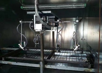 噴漆涂裝線以塑料件工藝為代表,前處理大多采用噴射式處理方式(部分金屬件采用浸漬式或噴射與浸漬結合方式),其主要目的是通過化學液體(硫酸、硝酸)以浸泡或噴射的方式,與工件表面的氧化物、油脂等產生化學反映來達到除油、脫脂、水洗、純水洗的目的。表面涂料為防腐油漆、色漆、清漆等裝飾性油漆材料,并且考慮塑料件高溫變形,一般采用的油漆成膜溫度為50至80℃左右,輸送系統前處理一般采用輕型懸掛鏈和輸送帶、網鏈送設備,前處理后轉線一般采用地鏈滑撬、懸掛輸送鏈等輸送方式。具體需要根據工件情況決定。其主要決定因素:工件大小、形狀、重量、材質等。