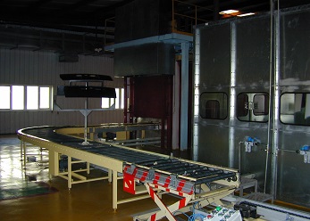 此噴涂線中工件輸送一般采用電動軌道車或天車為輸送方式。該噴涂線主要用于金屬工件、并且材質較厚、工件較大的設備、鋼板,如鑄鍛件、鋼結構件等。1噴1烘一般適合表面要求較低的設備(一般不建議采用),一般情況下,由于工件較大、重,生產量不高的情況下,噴砂(丸)、除塵都在噴砂房內處理。噴底漆、面漆、烘干都在噴烘一體房內進行。